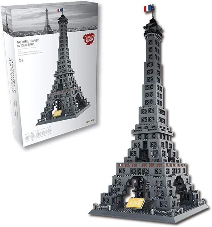 Dragon Blok - Eiffel Tower of Paris. The world's greatest architectural designs. Build a model of the Eiffel Tower and Bring some of the world's most popular landmarks home with you! Help cultivate your children's interest in travelling or relive memorable moments, with a beautiful home display! Boost creativity, family interaction, observation, reasoning & fine motor skills. Includes an informative booklet about the design, architecture and history of the building. Assembled height: 26.38 inches.. Total 1002 pcs. For ages 8+